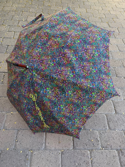 st place award was received in the Windham Fabric Challenge during Sewtopia 2021 held in Las Vegas. Using Windham's new line of featured fabrics, I elected to construct an umbrella. A selection of solids completed the interior and "Windham" embroidered on the exterior completed the piece.