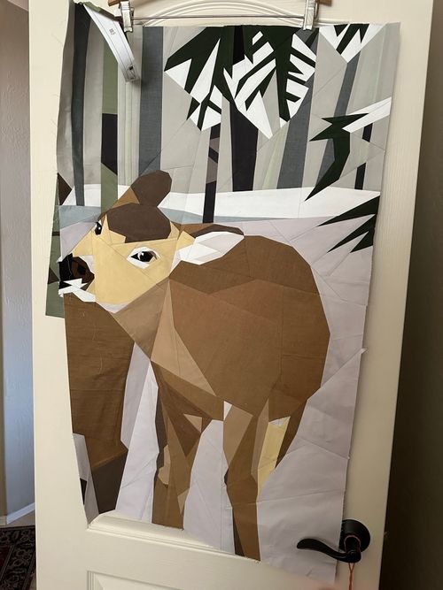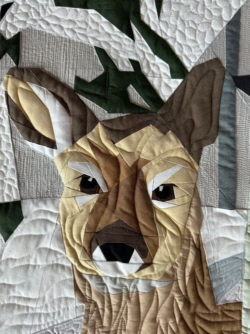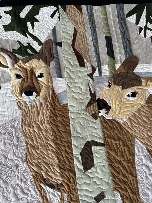 ooking In - Winter Visitors" was made for Mirabel Club's Hope for the Cause charity auction. This 50" square quilt was foundation paper pieced largely with hand-dyed fabric. Kimono silk thread and triple batting help give them 3-dimensional features. Working a magnifying glass and 24 pieces on one eyes qualifies for extreme paper piecing.