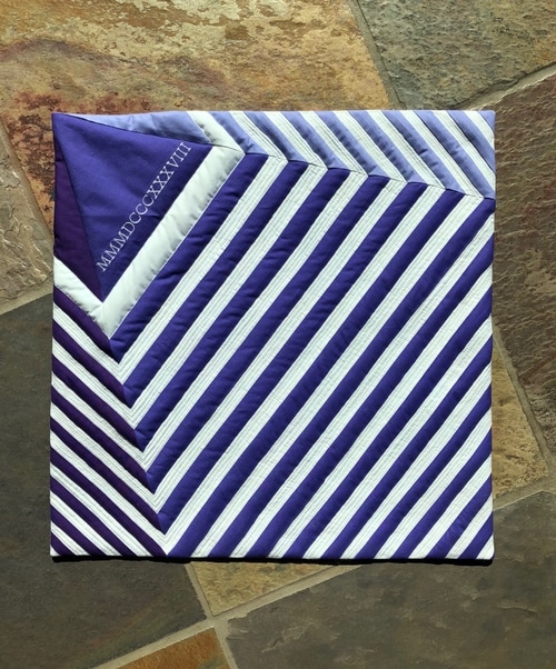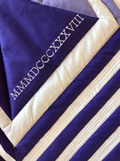 Judge's First (USA) was awarded to this 20” square mini, designed via EQ8, foundation paper pieced and submitted to the Pantone 3838 Ultra Violet Quilt Challenge hosted by @bryanhousequilts and @nohatsquilts. Double high loft batting and intermittent quilting provides relief. Color tones on the sides add to the 3 dimensional look.